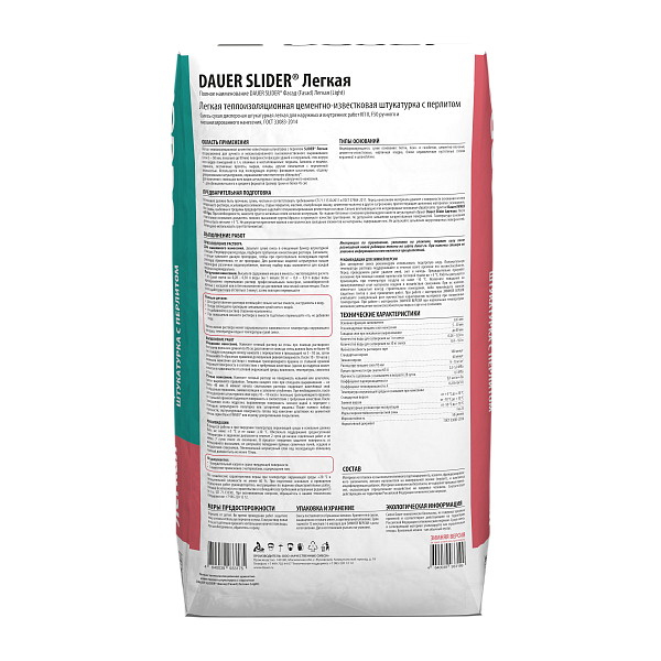 Штукатурка цементная: Dauer Slider® Легкая теплоизоляционная цементно-известковая штукатурка с перлитом, упаковка 30 кг